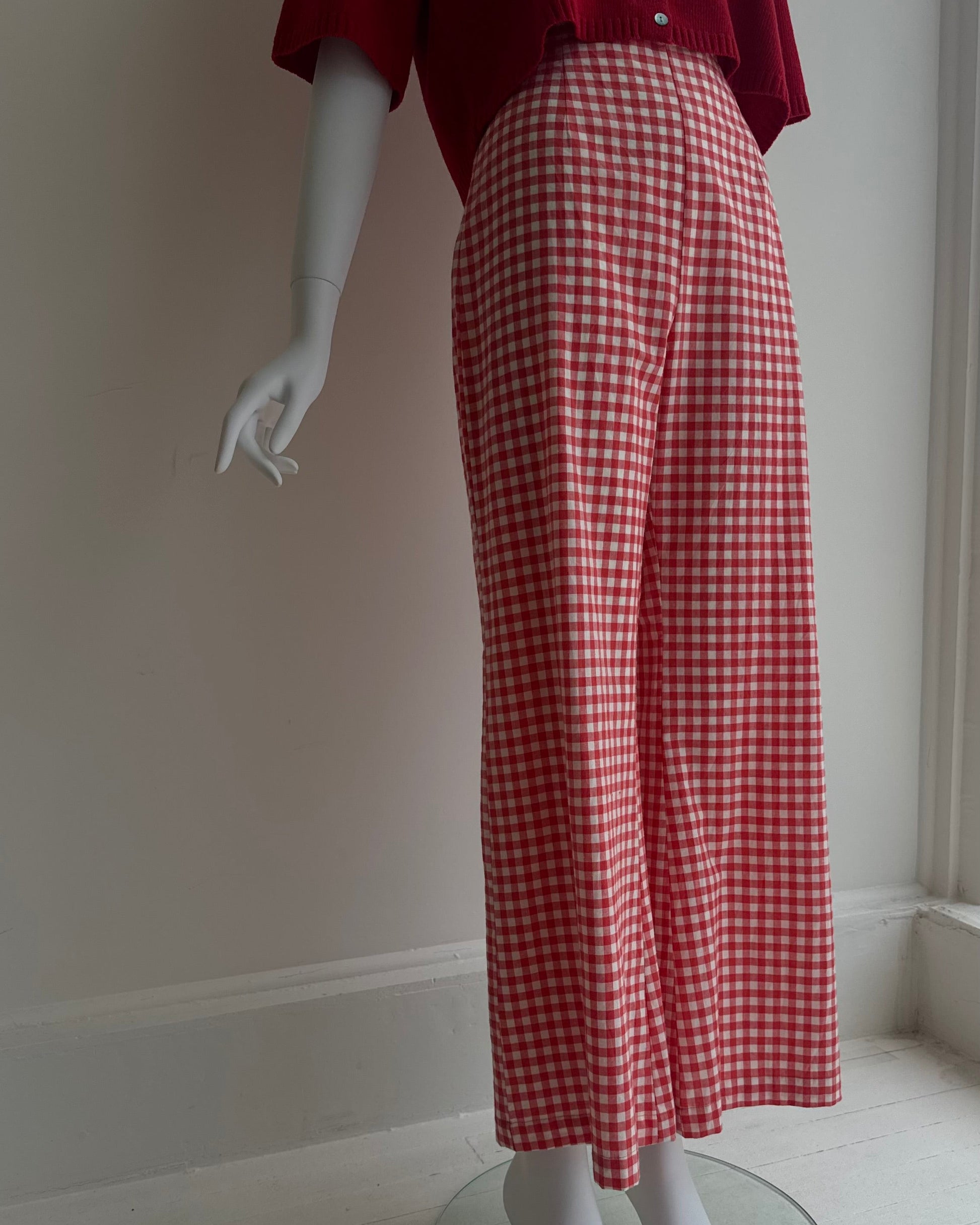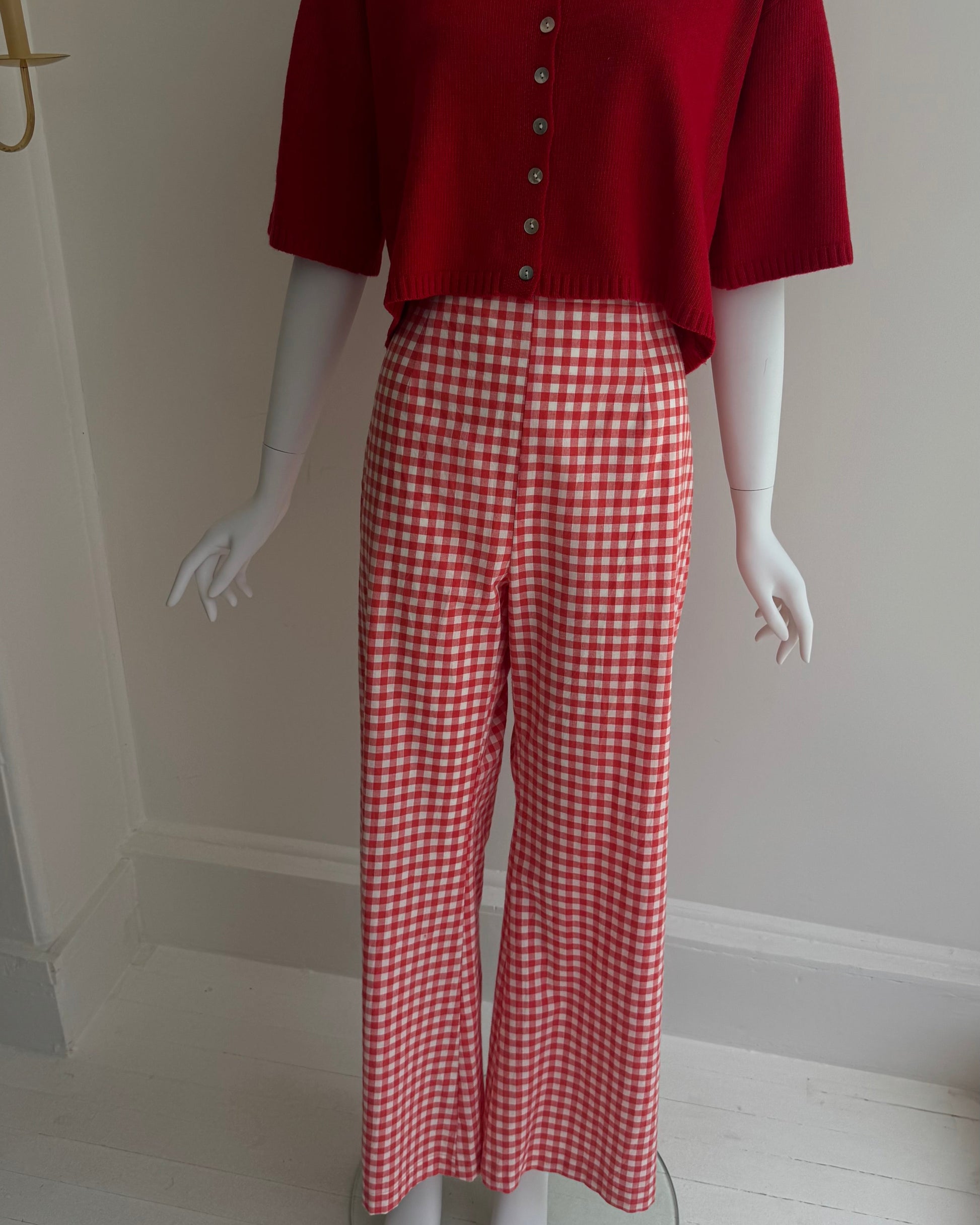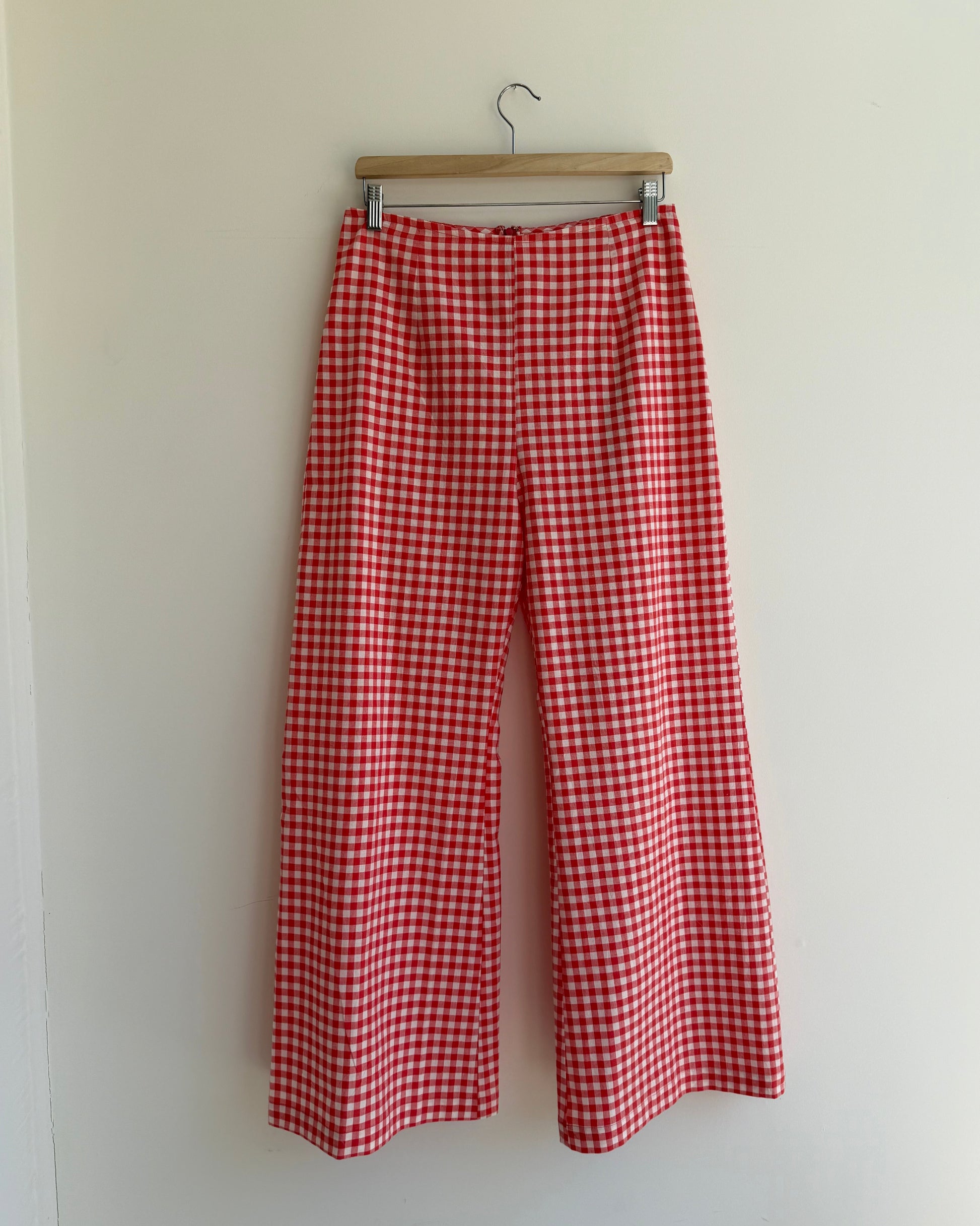 These stunning high waisted red gingham pants are perfect for an easy stylish look at the park or coffee with friends. Chic and classic for any sunny day!